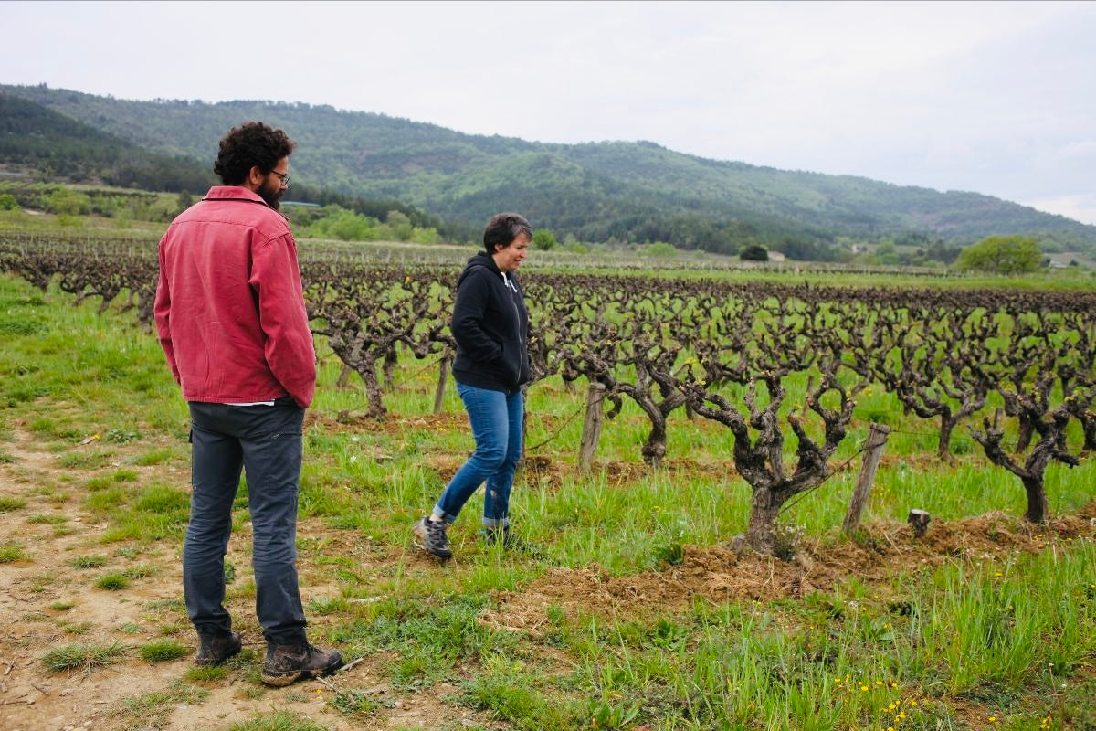 Méryl and Géraldine established themselves in the village of Valvignères in 2012 after Méryl had cut his teeth making wine in Madiran in the South West and Mâcon in Burgundy. On returning to the family vineyards and eventually taking the reins, on the advice of Gérald Oustric of Le Mazel, the Croziers stopped supplying grapes to the local co-op, obtained organic certification, and their 5 beautifully verdant hectares of Syrah, Grenache, Merlot, Cabernet Sauvignon, Ugni Blanc & Viognier became La Vrille et le Papillon.